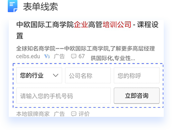 線(xiàn)索通能直接在搜索結果頁(yè)通過(guò)電話(huà)、表單、咨詢(xún)組件直接展現服務(wù)功能使需求明確的網(wǎng)民減少跳轉,直接聯(lián)系,留下銷(xiāo)售線(xiàn)索