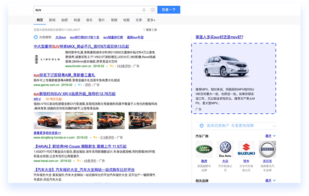 用戶(hù)興趣階段:您可以在用戶(hù)興趣階段,通過(guò)在搜索結果頁(yè)右側強勢展現品牌廣告,增加品牌露出