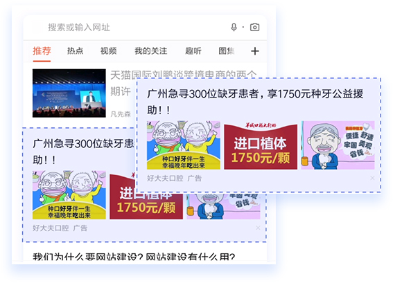 您的廣告將會(huì )展現在移動(dòng)端百度首頁(yè)推薦信息流當中